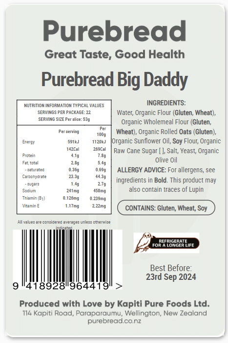 Big Daddy is certified organic, and therefore, free from pesticides and herbicides commonly found in non-organic bread. All ingredients are grown and produced using sustainable farming practices that nurture and protect our land.
